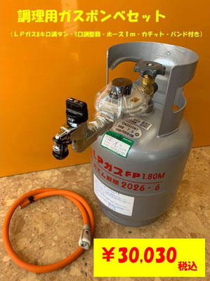 - 新ボンベ容器にはLPガスがフル充填済みです。